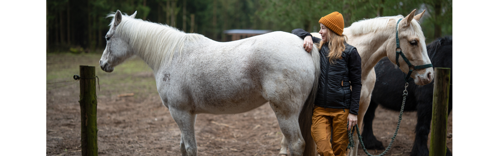 När hon är på jobbet är Alaska-västen från Happyhot en fast följeslagare för Vinnie. ”Mitt jobb är lite ovanligt för en skogsförvaltare, eftersom det mest handlar om besiktning av öppet land. Och så är det mycket växling mellan kontor och transport. Här är västen perfekt eftersom den möter mitt behov av flexibilitet. Jag kan ju slå på och av värmefunktionen efter behov. Ofta är den faktiskt varm nog i sig själv utan att jag behöver höja värmen. Det gäller för övrigt också strumporna. De är tillverkade i merinoull och håller därför otroligt bra på värmen - även utan att värmen är på. När det gäller västen är jag dock lite försiktig med att ha den på i stallet utan en jacka över. För jag tycker att den är så fin att jag inte vill riskera att förstöra den.”